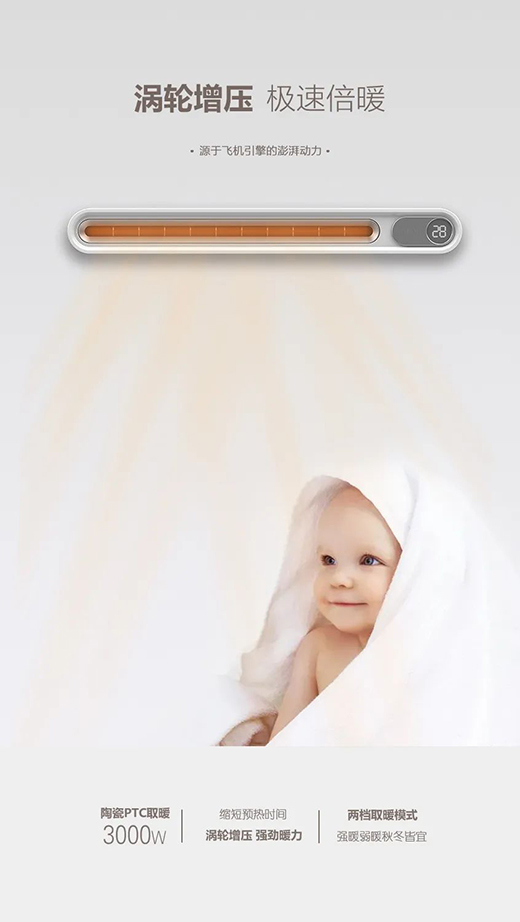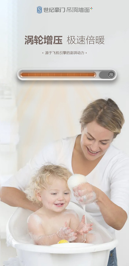 *渦輪增壓,強(qiáng)勁暖力:浴室暖空調(diào)除了要足夠暖之外,還得要加熱速度快,因此我們冬天沐浴加熱無需等待。
