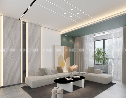 如以今頂石膏白大板作為主色調(diào)可顯示出典雅和高貴。用其他跳色作為點綴,則反應(yīng)出主人熱情好客的態(tài)度。