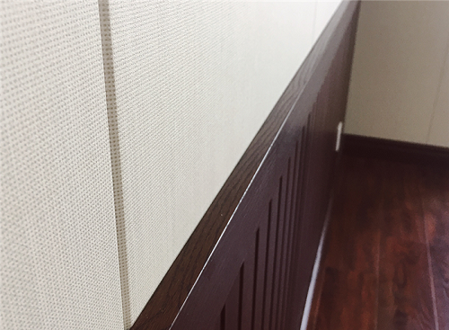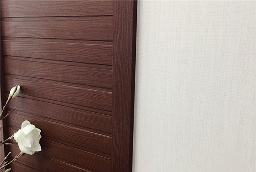 ▲它的墻面采用了愛爾菲竹木纖維集成墻板的錦布系列和雅木系列,以錦布墻板做底,呼應(yīng)屋頂雅居扣板的米色,并呈現(xiàn)雅致素凈的布紋機理;以深棕紅色的雅木墻板做墻面造型,呼應(yīng)整體空間的木色,沉穩(wěn)而大氣。