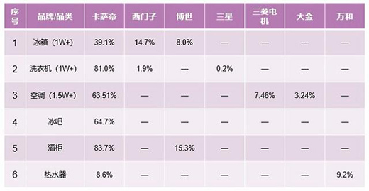 對比西門子、博世、三星、大金等品牌的市場占有率,卡薩帝以絕對的優(yōu)勢拿下全國第一。