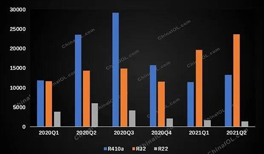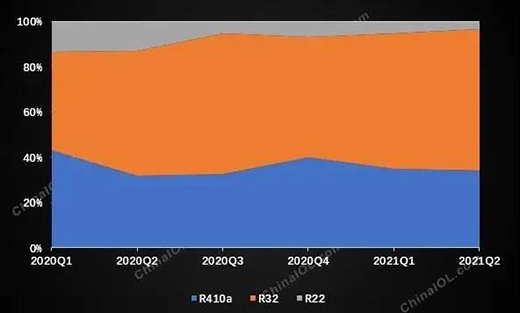 2020-2021年家用空調(diào)細(xì)分冷媒產(chǎn)品結(jié)構(gòu)(按銷量)