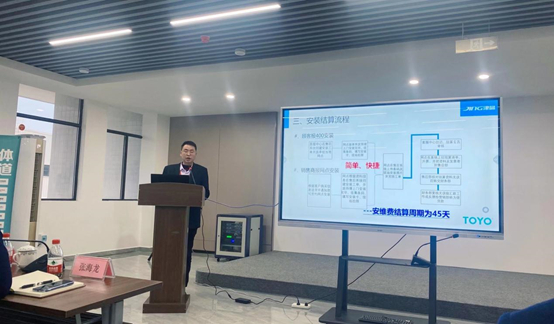 TOYO東洋空調(diào)售后部長黃昌華發(fā)表售后報(bào)告。他提出,集團(tuán)建立完善的全國售后服務(wù)體系,包括服務(wù)登記系統(tǒng)、服務(wù)查詢系統(tǒng)、智能驗(yàn)收查詢系統(tǒng)、服務(wù)保障系統(tǒng),具有強(qiáng)大的時(shí)效性,旨為終端消費(fèi)者提供終身質(zhì)保的服務(wù),堅(jiān)定地維護(hù)消費(fèi)者權(quán)益。