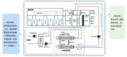 美的直接蒸發(fā)冷-熱回收方案,通過高效自然蒸發(fā)冷卻技術(shù)對(duì)數(shù)據(jù)中心冷卻降溫,實(shí)現(xiàn)全年自然冷卻,CLF(制冷負(fù)載系數(shù))低至0.09,大大降低數(shù)據(jù)中心能耗。并回收利用數(shù)據(jù)中心機(jī)房余熱,為設(shè)施農(nóng)業(yè)、設(shè)施養(yǎng)殖業(yè)供暖,實(shí)現(xiàn)清潔能源的再利用。該創(chuàng)新方案不僅能有效提高數(shù)據(jù)中心能源綜合使用效率、降低PUE,同時(shí)也達(dá)到抵消碳排放的效果,實(shí)現(xiàn)相對(duì)的“零碳排放”。