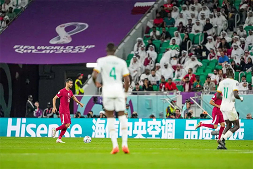 11月25日,北京時間21:00,在萬眾期待中,世界杯小組賽第二輪A組首戰(zhàn),東道主卡塔爾對陣塞內(nèi)加爾的比賽正式打響,最終塞內(nèi)加爾憑借流暢的進(jìn)攻將比分鎖定在3:1。在歡呼的海洋中,“Hisense 海信中央空調(diào) 品質(zhì)首選”醒目的中文廣告牌成為賽場一道不容忽視的靚麗風(fēng)景線。
