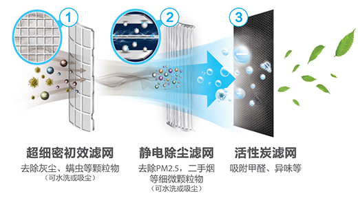 高效凈化型面板(選配件需另行購(gòu)買)通過(guò)指示燈顏色顯示當(dāng)前房屋空氣質(zhì)量。超細(xì)密初效濾網(wǎng)、靜電除塵濾網(wǎng)、活性炭濾網(wǎng)*將肉眼不易察覺(jué)的灰塵輕松過(guò)濾,改善室內(nèi)空氣質(zhì)量。