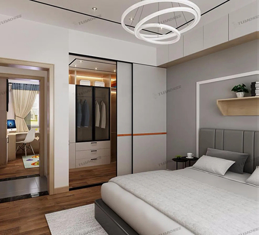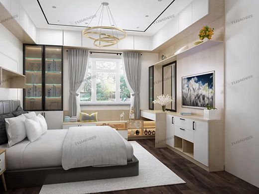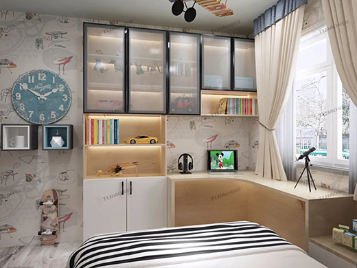 通過以下效果圖可以看出,兔寶寶全屋定制將臥室收納做到了極致,頂部做成環(huán)繞式收納柜,還有窗臺榻榻米、書桌柜、梳妝柜。這樣的臥室可以裝下四季了吧~兔寶寶全屋定制有一個很大的特點(diǎn):環(huán)保。所以選擇兔寶寶就少了很多裝修污染的煩惱,尤其是對于收納提出高要求的業(yè)主朋友。