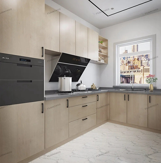 夢境系列定制櫥柜以木色為,整體感強(qiáng),讓人舒服。抽屜式收納、格子式收納、柜門式收納將廚房打理得井井有條。讓下廚so easy,燒菜更享受。