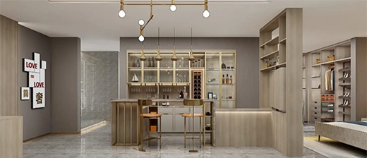 餐廳整體是由開放式酒柜組合而成,簡(jiǎn)單低調(diào)的設(shè)計(jì)充分體現(xiàn)了“簡(jiǎn)奢主義”允許生活的簡(jiǎn)單,但也決不放棄生活的品質(zhì)的理念。