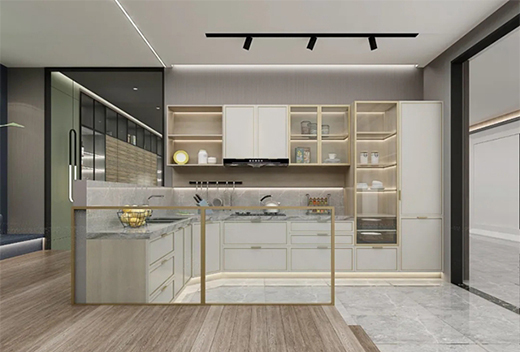 以橡木白為基調(diào)的開放式廚房,現(xiàn)代人生活壓力大,想像一下當(dāng)你回到家來(lái)到這樣一款定制的廚房烹飪美食,回歸安靜享受片刻靜謐時(shí)光,一定感到很愜意。