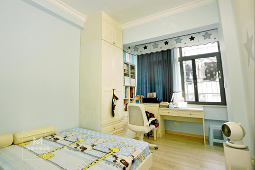 哥哥的房間沒有做太多格局上的改動(dòng),而是將墻色換為了他喜歡的藍(lán)色,以及在軟裝加上了他喜歡的太空元素,滿足了男孩子對宇宙的好奇心。