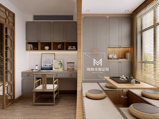 如果空間足夠,還可以配置升降茶桌,讓空間更具有生活品味。還可以放上一些軟墊和抱枕,以及綠植,打造專屬的休閑活動(dòng)區(qū)域,享受寫(xiě)意生活。