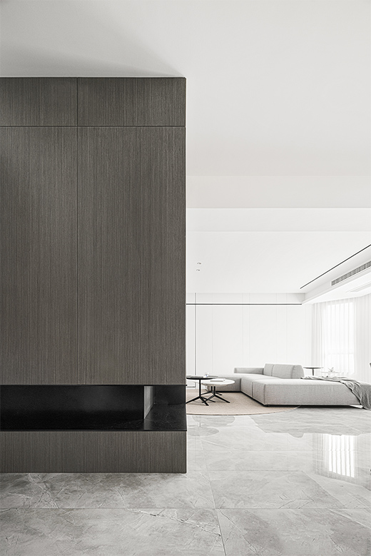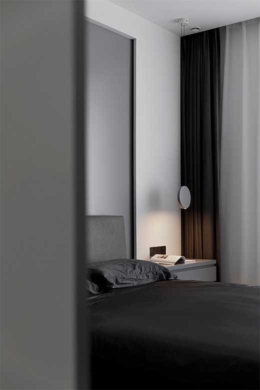 灰色,是騎士的顏色,穿插于黑白之間,隱鋒閉芒,無言守護(hù);灰色作為一種中性色,溫和、謙恭,給予人冥想的空間。生活的浮躁,在灰色調(diào)撫平下變得靜謐,在燈光的搭配下顯得更為神秘。