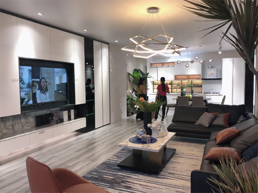 在本次行業(yè)年度“大考”中,詩(shī)尼曼搭建了客廳空間、餐廚一體空間、衣帽間、書(shū)房空間等多個(gè)空間場(chǎng)景,展示全屋定制柜、櫥柜電器柜、軟體家具、門(mén)窗、木門(mén)、智能鎖等全品類家居產(chǎn)品。產(chǎn)品風(fēng)格多樣,極簡(jiǎn)、輕奢、網(wǎng)紅、摩登,滿足人們對(duì)不同品質(zhì)家居與精致生活的追求。