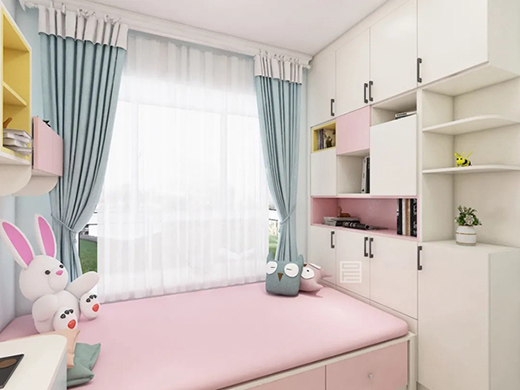 簡約現(xiàn)代中帶著一絲溫馨,為孩子構(gòu)筑一個甜美、浪漫的公主房,在滿足孩子基本的儲物需求之外,設(shè)置小巧靈便的書桌,創(chuàng)建一個汲取知識的小天地。