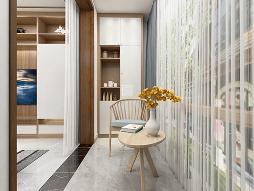 玲瓏有致的小陽臺放置茶幾和座椅,角落設(shè)置儲物柜,擴大空間儲物性能。愜意的午后在小陽臺上品嘗一杯清茶或者咖啡,獲取生活的美好就是這么簡單。