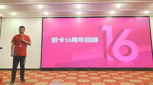 營銷中心副總經理江辰先生向勞卡小伙伴們介紹了勞卡16年的發(fā)展歷程。從一個小公司,到如今在全國各地都有體驗店的大企業(yè),勞卡的發(fā)展離不開所有勞卡人的奮斗。