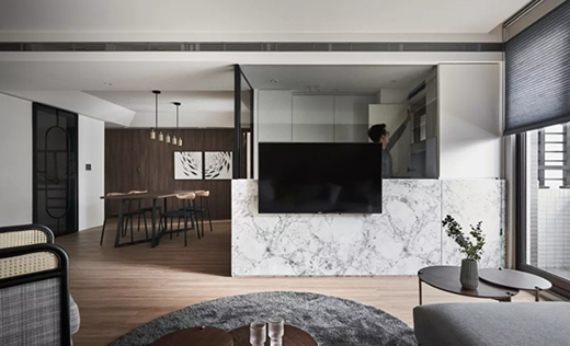 臺(tái)式風(fēng)格以純粹而定靜的本質(zhì),形構(gòu)出居宅豐富的生命力。以線面的連貫維系持續(xù)性,藉由篩光的動(dòng)作,形成立面的延續(xù)主題,讓陽(yáng)光的溫度,圍攏全室,使視覺在游走的同時(shí),衍生出讓居住者體會(huì)趣味的強(qiáng)大感染力。