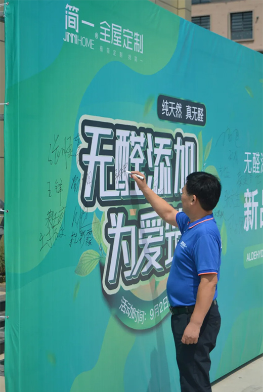 晨露剛掩蓋八月的熱浪,九月就灑脫地信步而來。褪去夏日炎炎的熱烈,簡(jiǎn)一家居也為迎面而來的九月送上一份清涼和健康,在8月最后一天簡(jiǎn)一家居召開了全體經(jīng)銷商大會(huì),向經(jīng)銷商展示了我們?nèi)麻_發(fā)的無(wú)醛添加“純真板”。也為各大經(jīng)銷商解讀“簡(jiǎn)一無(wú)醛活動(dòng)月”的一些細(xì)則及政策。為即將到來的黃金九月做有力的宣發(fā)和推廣支撐。