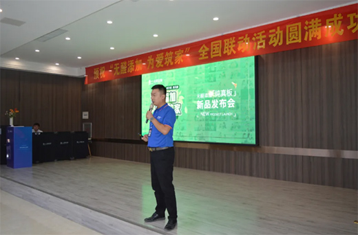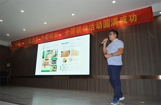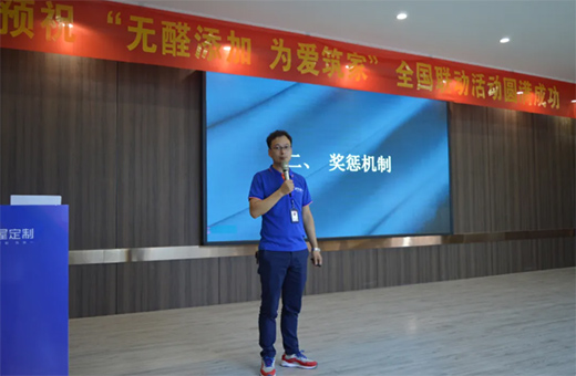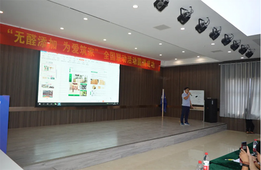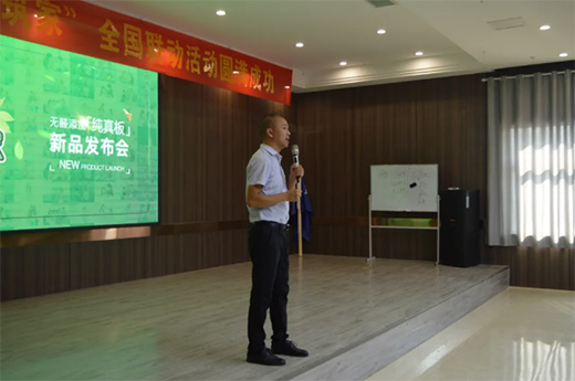 發(fā)布會(huì)的下一個(gè)環(huán)節(jié),則是銷售部劉總為各地經(jīng)銷商講解即將到來的黃金銷售期,簡(jiǎn)一家居推出的“無(wú)醛添加 為愛筑家”新品活動(dòng)月的活動(dòng)政策及扶持力度。簡(jiǎn)一家居為了能更快速的把更環(huán)保健康的板材用在業(yè)主朋友的愛家中,此次扶持力度空前。而“0”元免費(fèi)升級(jí)無(wú)醛“純真板”更是此次的活動(dòng)口號(hào)。