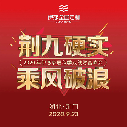 2020年9月23日,伊戀全屋定制將于湖北荊門舉辦伊戀2020秋季財(cái)富峰會(huì),開啟今秋的財(cái)富新篇章。