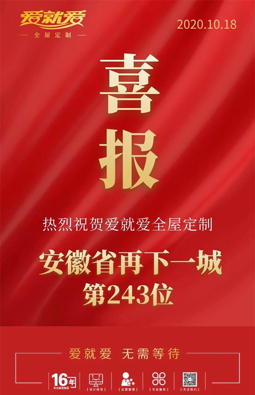 熱烈祝賀愛(ài)就愛(ài)全屋定制安徽省再下一城!