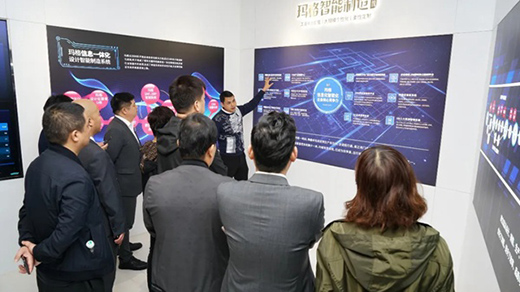 在瑪格智能品牌館內(nèi),唐董親自給嘉賓講解瑪格智能制造系統(tǒng)的運作流程,瑪格的信息化和智能化是企業(yè)的核心競爭力。