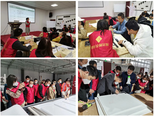 產(chǎn)品銷售培訓(xùn)為期5天,從定制行業(yè)發(fā)展趨勢、基材認知、產(chǎn)品認識、系列風(fēng)格、生產(chǎn)工藝、終端店面銷售技巧、銷售實戰(zhàn)話術(shù)練習(xí)等多個方面進行系統(tǒng)化培訓(xùn)。