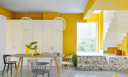 亮麗黃作為2021年的流行色,它的美是毋庸置疑的,在空間美學(xué)領(lǐng)域,亮麗黃往往代表著活力。