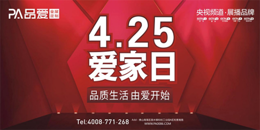“愛(ài)家日”是品愛(ài)全屋定制打造的年度全民消費(fèi)盛宴,每當(dāng)?shù)搅藧?ài)家日活動(dòng)期間,品愛(ài)都會(huì)為愛(ài)家人士準(zhǔn)備豐盛好禮,呼吁更多的人加入到愛(ài)家的行列中,一起為家打造更舒適、更具品質(zhì)的家居生活。本年度“愛(ài)家日”活動(dòng)截止到4月25日。