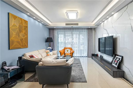 為保持輕奢風整潔簡單的觀感,聯(lián)邦高登作為高端全屋定制品牌代表,其以客戶需求為中心,針對客廳選用的家具以低矮型為主。放眼望去盡是通透視野,沙發(fā)墻與電視背景墻通過色彩、材質(zhì)對比打造柔和視覺效果,而一字型電視地柜則以簡約造型為客廳點睛。以“精簡、便捷、美”三個要素作為電視柜的挑選指標,一字型抽屜電視柜既能擺放客廳瑣碎雜物,又能夠渲染別致輕奢氣質(zhì),成就亮眼一筆。金沙拉手設(shè)計能夠充分滿足屋主對線條裝飾的喜好,為柜體帶來精致感。