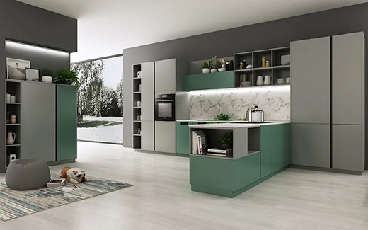 將莫蘭迪色系用在櫥柜設(shè)計上,溫柔的顏色能給人一種靜謐的美感,低調(diào)舒適。