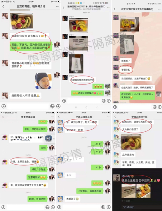 此番國內(nèi)最嚴(yán)重的疫情所在地是廣州荔灣區(qū),因配合隔離需要,人們的生活受到了很大程度影響,很多物質(zhì)都不方便出門采購,合生雅居融穗店團(tuán)隊(duì)化作抗疫志愿者,為他們送去“千花白果”禮物,隔離疫情,不隔離愛!“我們重視客戶,更珍愛家庭!”