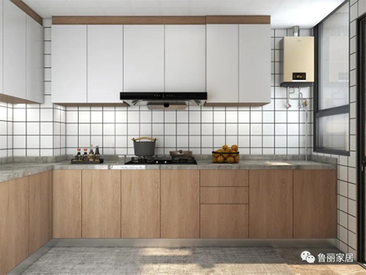 魯麗家居這款極簡廚房采用經(jīng)典的L型設計,將整體動線連為一體,櫥柜與吊柜相結(jié)合實現(xiàn)廚房各類物品的儲納。無拉手的柜門設計讓廚房整體簡約感十足,兩種不同的配色設計也可以滿足不同喜好的消費者的需求。