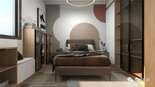 高級的質(zhì)感結(jié)合華麗的材質(zhì),為這一室設計增添了更多光彩。一門到頂?shù)囊鹿衽c玻璃門相結(jié)合可謂質(zhì)感十足,實用中透露出高級;收納柜搭配玻璃門,透過燈光的折射,可以將收納的書籍、藝術品一覽無余,讓臥室也可以成為一個極具藝術感和人文性的空間。
