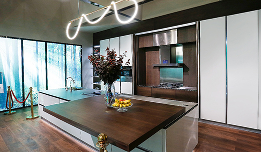 而“拉菲諾3”系列定制櫥柜則是以亮光烤漆搭配煙熏木色,沉穩(wěn)大氣,科學(xué)規(guī)劃了L型轉(zhuǎn)角櫥柜+中島的動(dòng)線布局,將中廚功能和西廚設(shè)計(jì)進(jìn)行了完美結(jié)合,既能滿足國(guó)人的煎炒習(xí)慣,又能滿足西餐愛好者的烹飪需求。