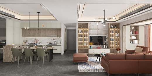 “簡(jiǎn)意+”系列以自然的深木色為主色調(diào),搭配高級(jí)灰皮革及淺灰玻璃門,在簡(jiǎn)單低調(diào)中透露出不一樣的輕奢質(zhì)感。