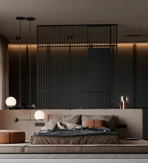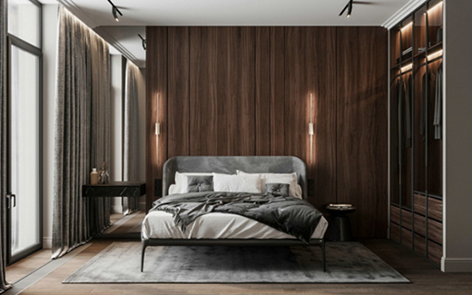 在靈魂休憩之所,用木飾板本身的深棕色,守護夜里的夢。