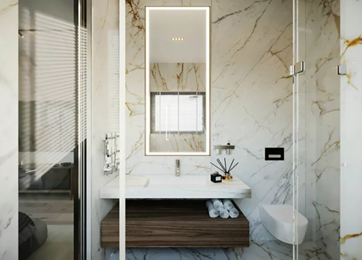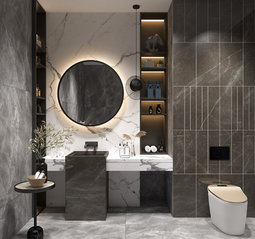 冷色調(diào)的巖板和大理石是浴室必不可少的元素,質(zhì)感堅實,更顯潔凈。