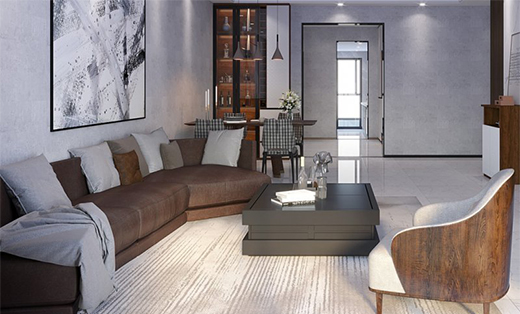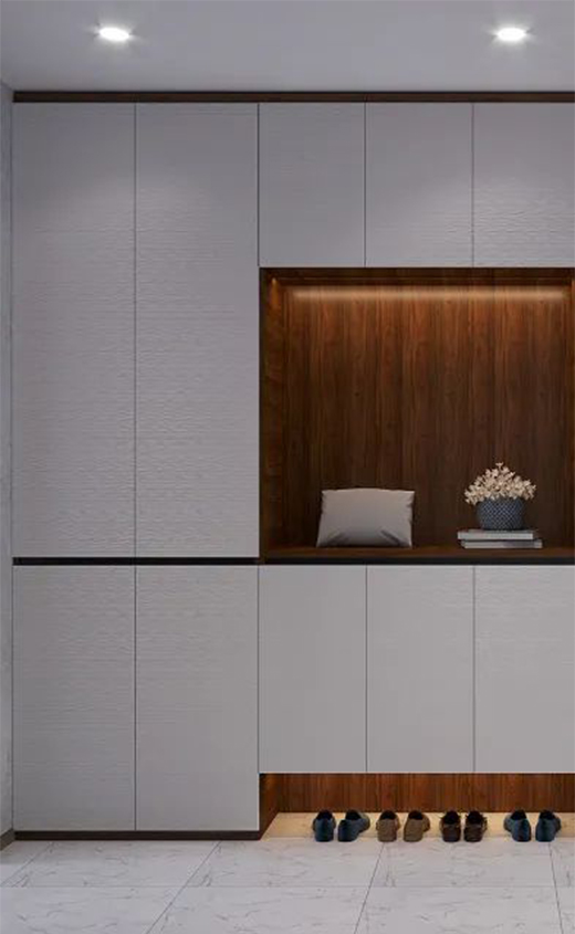 沉穩(wěn)的胡桃木色搭配富有肌理的純白,遇上冷峻的鐵灰色。營造出一種厚重的自然感,給人以沉穩(wěn)、舒適、安逸的感受。