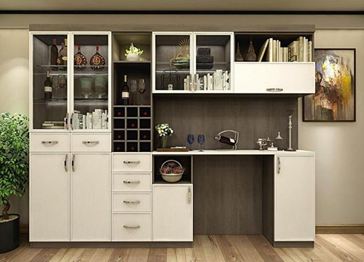 作為櫥柜的延伸產(chǎn)品,餐邊柜往往容易被人忽視,并且也很少有成品出現(xiàn)的市面上。因?yàn)椴瓦吂袷切枰鶕?jù)家庭布局量身定制,只有全屋定制才能提供這樣的服務(wù)。對于廚房空間不大的家庭來說,餐邊柜就是拯救收納的神器,臺面上可以放一些電飯煲蒸烤箱等常用廚具,柜體中還能放置一些不常用的餐具和儲備的米面糧油等。