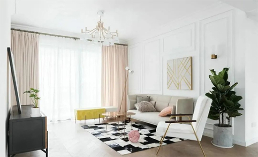 輕裝修重裝飾,小資歐風靠軟裝搭配出美感,有黑白灰的高冷感,又有綠植、布藝沙發(fā)、實木家具、清新自然的裝飾畫以及柔軟的地毯帶來的溫軟和活力??臻g整體傾向于淺色系,給人一種干凈明朗的感覺。