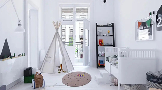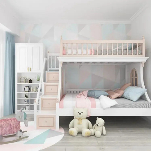 兒童房的墻面配色建議優(yōu)先選擇亮麗、輕松、柔和的色調(diào),用白色作為過渡色,以便于對房間內(nèi)不同的功能區(qū)域進(jìn)行劃分。所以在配色上我們可以根據(jù)不同年齡階段來選擇相應(yīng)的色彩,讓孩子的童年更加五彩繽紛。