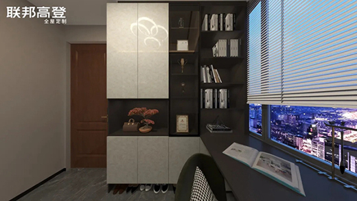 書房彌漫著低調(diào)沉穩(wěn)氣息,書柜收納藏露結(jié)合婉拒凌亂,空間簡(jiǎn)而不凡彰顯穩(wěn)重內(nèi)涵的理性之美。