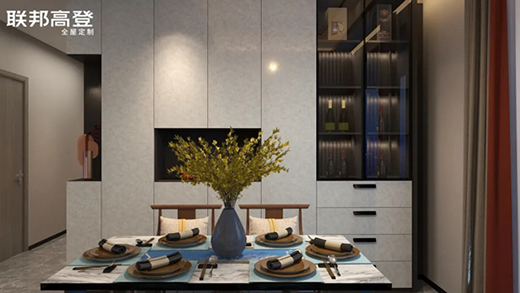 餐廳整墻餐邊柜造型,保持一貫優(yōu)雅姿態(tài);攜手陌上別樣“味道”,一日三餐也要?jiǎng)e有一番滋味。