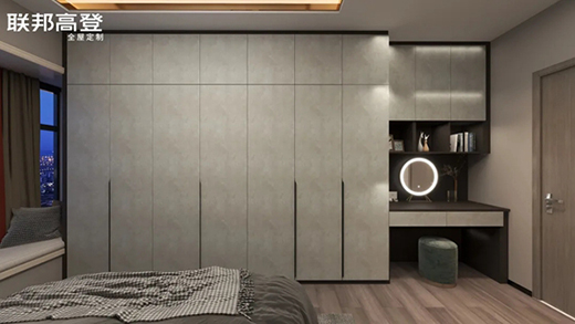 衣柜+梳妝臺(tái)個(gè)性化組合定制,通頂設(shè)計(jì)完美拒絕落灰煩擾,同時(shí)滿足換衣、梳妝一字動(dòng)線順暢進(jìn)行。