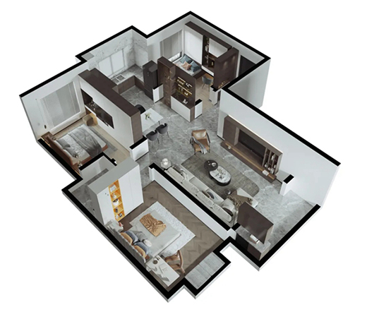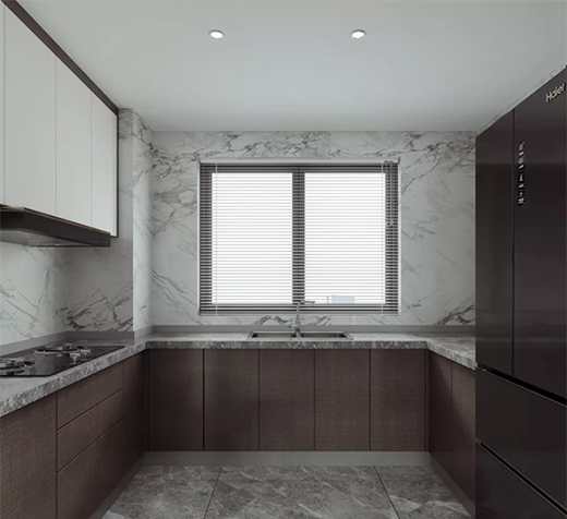 2.采半開放式餐廚區(qū),與客廳緊密相連,增強(qiáng)家人間的互動(dòng)交流,寬敞的空間視野,整個(gè)布局流暢不擁擠;