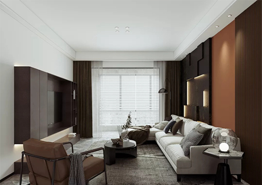 3.以高級(jí)灰為基調(diào),結(jié)合白色+棕色的跳動(dòng),點(diǎn)綴空間的靈動(dòng)性;