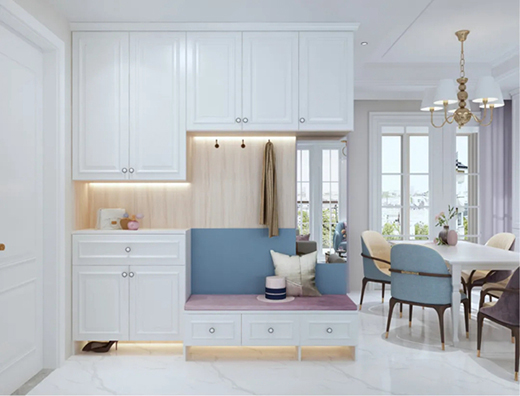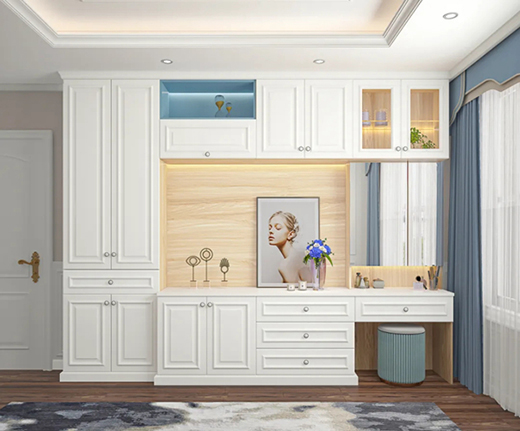 通過巧妙設(shè)計(jì),融入衣柜、妝臺(tái)、置物架