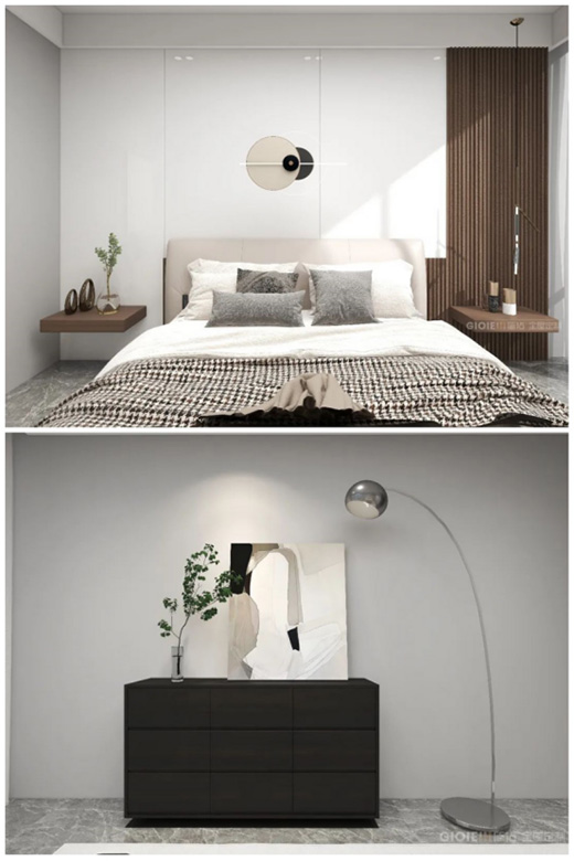 白色系與原木條紋結(jié)合,時尚大方又顯獨特新穎,營造出溫馨優(yōu)雅的休息環(huán)境氛圍。