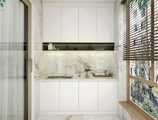 簡凈的配色、高質(zhì)感的材質(zhì)碰撞,陽臺柜時尚、年輕的個性氣息呼之欲出,使得陽臺這隅空間更具備了細膩、精致的品質(zhì)導向。